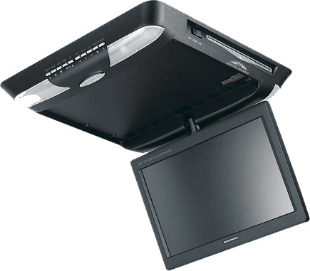 Les écrans de plafond sont parfaits pour un visonnage collectif des passagers arrières et s'intègrent parfaitement dans un habitacle du fait de leur faible épaisseur.